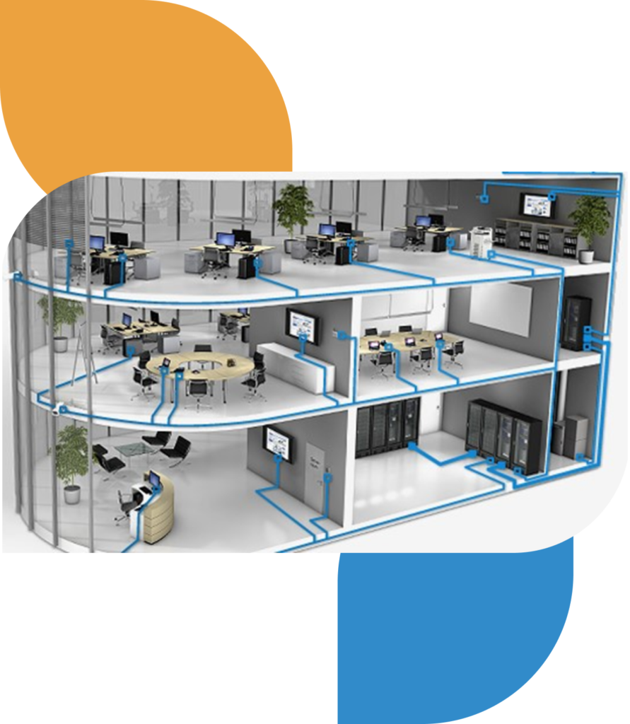 Structured Cabling Systems: We set up a special network system that keeps everything organized Inclusive Elements: This solution covers everything related to networks, including WIFI and local area networks in the organization. Key Activities: We put in the cables that connect everything from the server rooms. We install switches and routers to make sure everything works smoothly.